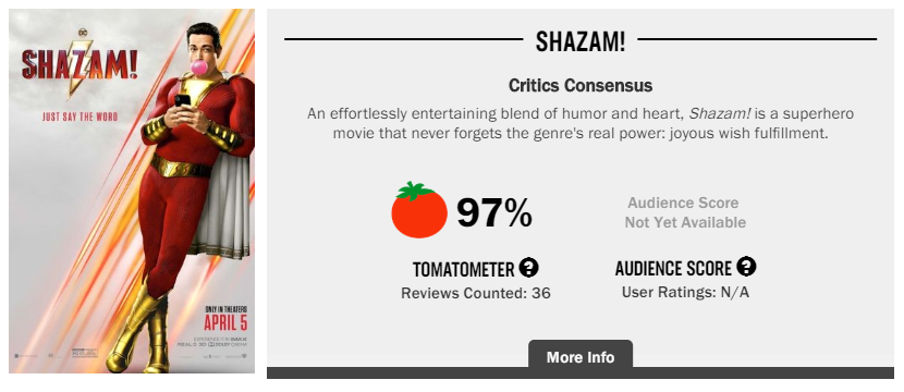 "Shazam!", novo filme que envolverá humor da DC Comics abre o principal site de críticas do cinema com a incrível marca de 97% de aprovação.